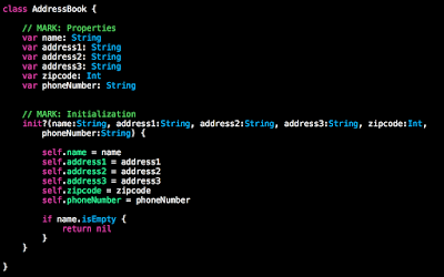 let wrongCase = AddressBook(name:"", address1:"MyAddress1", address2:"MyAddress2", address3:"", zipcode:123432, phoneNumber:"212-2343556")