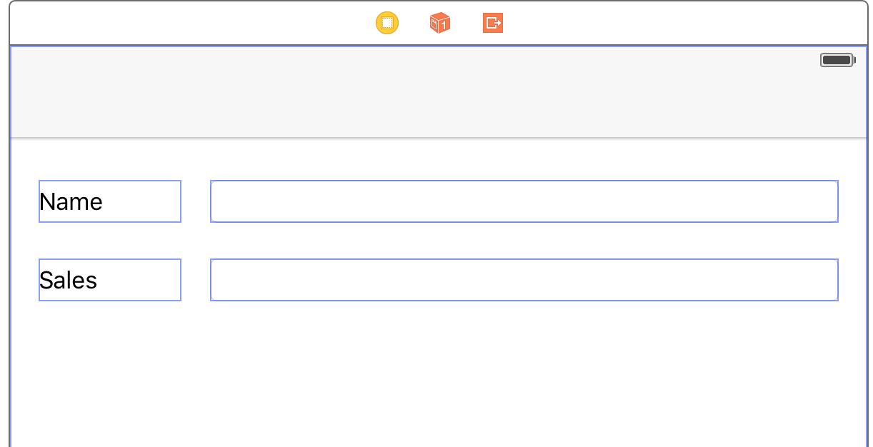 The settings of the textfield should be the same as the edit view controller. Check the settings in the edit view controller and replicate the settings. We also need to change the label text to "Name" and "Sales".
